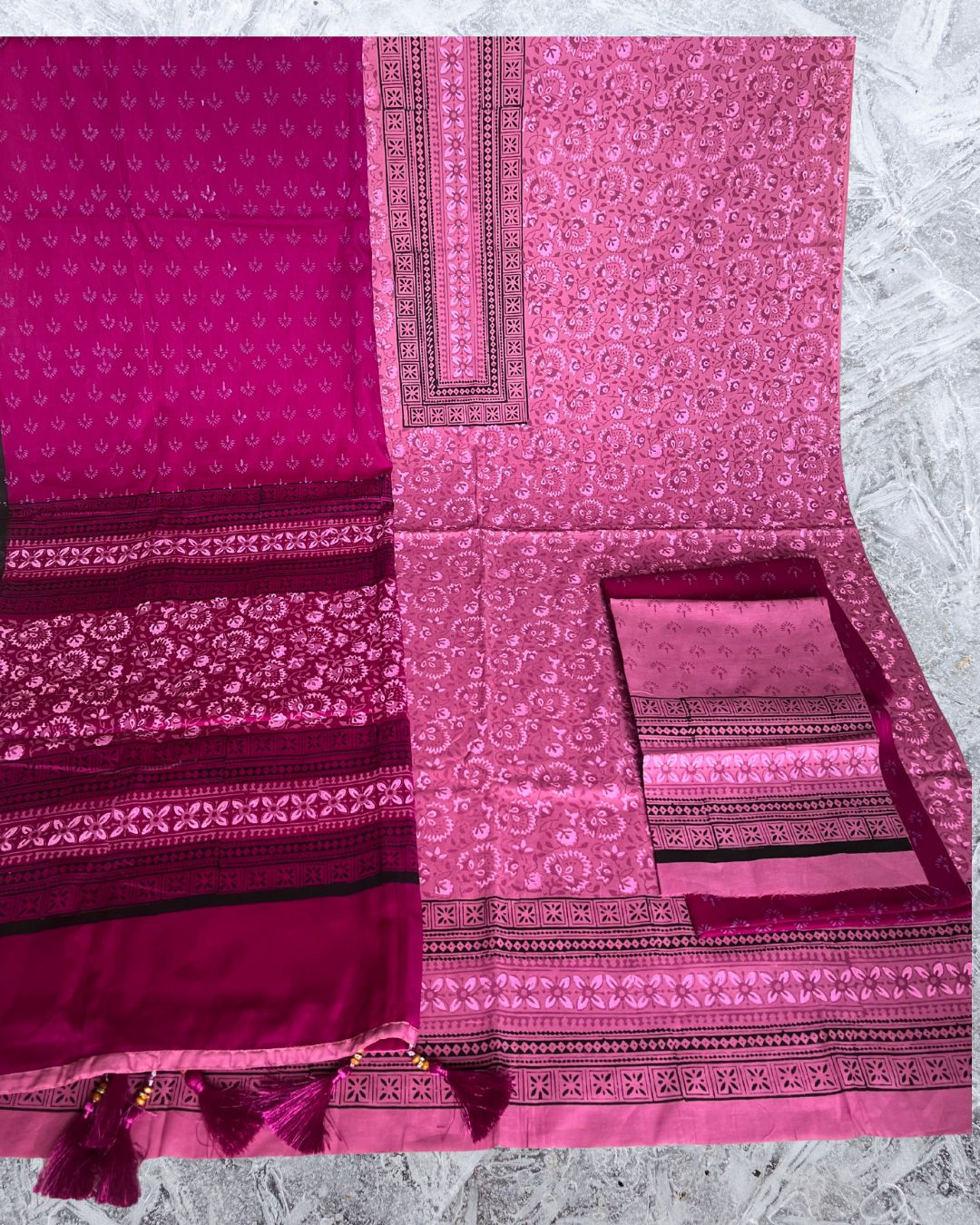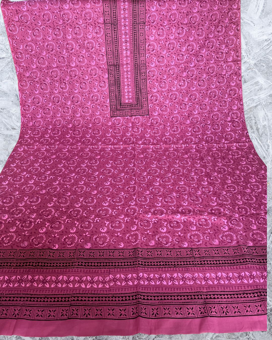 পিওর সুতির ব্লক প্রিন্ট থ্রী পিস(পিয়াজ কালার)
