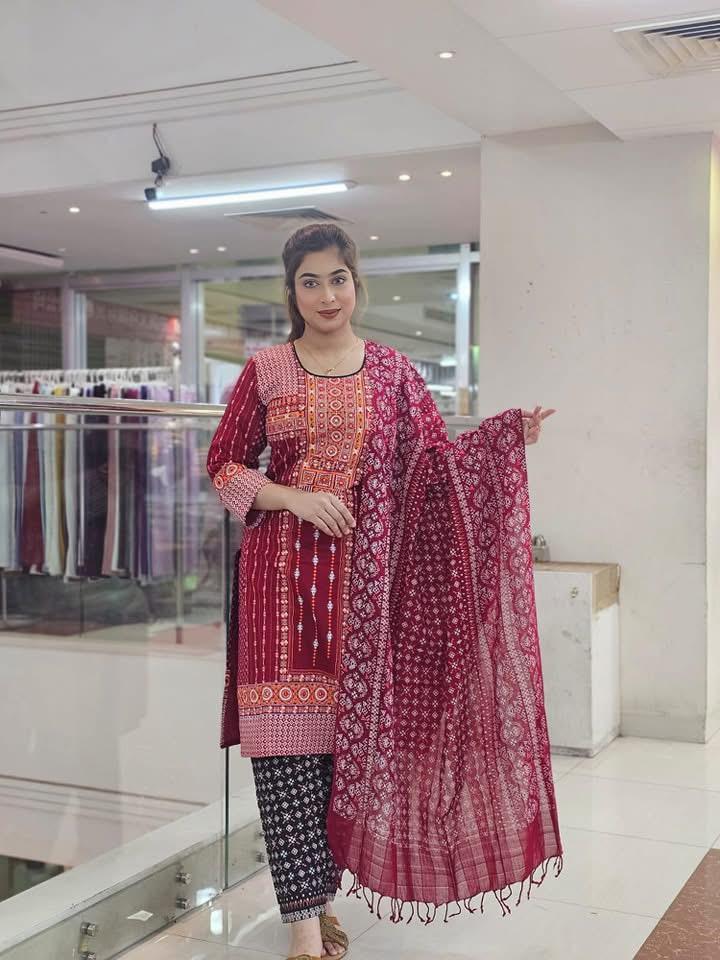 আড়ং কটন কাপড়ের আকর্ষণীয় এই থ্রী পিস্ I ব্লক প্রিন্টের উপর ডলার ও এম্ব্রয়ডারি করা I ১০০% রং গ্যারান্টি I কালার কম্বিনেশন মাশাল্লাহ দারুন Iনেক থেকে দামান পর্যন্ত ব্লকের সাথে ম্যাচিং ডলার ও এমব্রয়ডারি কাজ পাবেন I ব্যাক সাইডে ব্লক প্রিন্ট পাবেন I সালোয়ার সেইম কোয়ালিটি কাপড়। ম্যাচিং প্রিন্ট পাবেন।